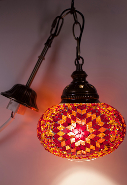 A lamp of the type to suspend from the ceiling.It’s possible to load on a usual ceiling socket.It’ll be the atmosphere of the Middle East.